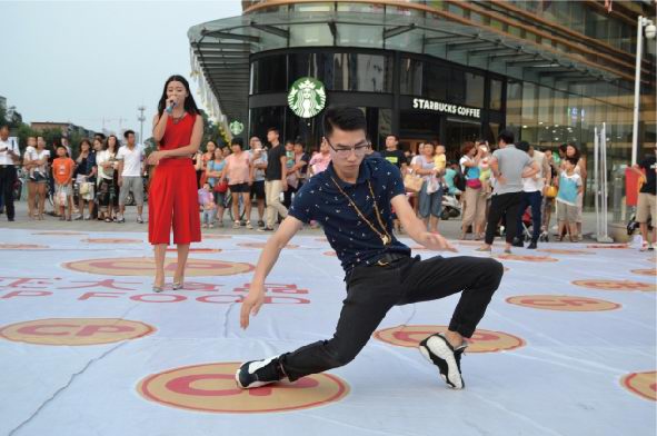 活動時(shí)長大約30分鐘,首先快閃人員在王府井南昌路店門口廣場中央集合,穿戴著簡單大方、整齊利索的衣物四處游走在人群中。時(shí)間一到,音樂響起,歌手慢慢走近中央,一首振奮人心的“我和你”拉開整個(gè)活動的序幕,瞬間引起了在場所有人群的關(guān)注。緊接著舞蹈演員閃亮上場,展開了一場激情澎湃的機(jī)械舞,帶動現(xiàn)場觀眾情不自禁參與到表演中來,此時(shí)人流迅速聚攏,引起圍觀。然后正大食品有限公司員工身著公司服裝,唱著正大集團(tuán)《愛是正大無私的奉獻(xiàn)》一起出現(xiàn)在廣場中央,隨后幾段歌舞串燒將現(xiàn)場氣氛推向***,在觀眾意猶未盡之時(shí)迅速閃開在人群之中。活動過程中穿插進(jìn)行了分發(fā)公司宣傳材料、食品安全知識宣傳單,現(xiàn)場觀眾品嘗了洛陽正大豬肉調(diào)理品、醬鹵產(chǎn)品及集團(tuán)現(xiàn)代食品。