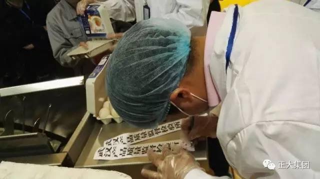 現場,武漢產品質量監(jiān)督檢驗所方惠文主任、彭勇勝先生對正大雞蛋進行現場抽檢。