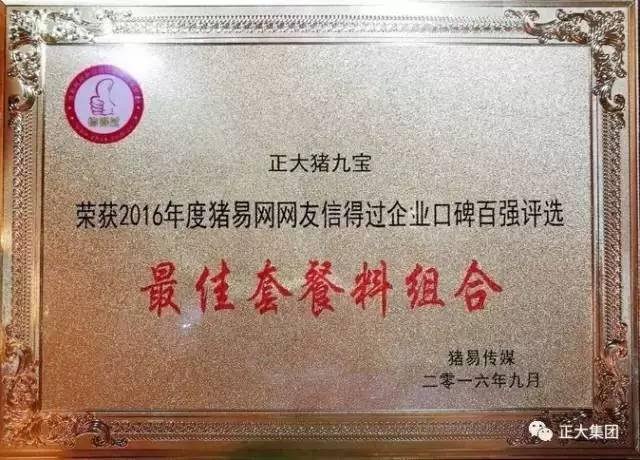 ▲正大豬九寶被豬易網(wǎng)網(wǎng)友評(píng)為2016年度“***佳套餐料組合”
